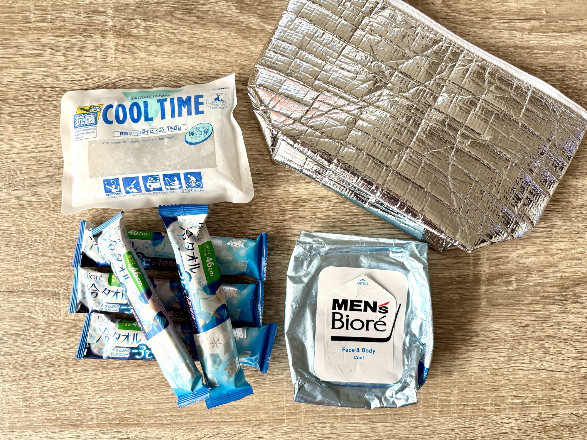 保冷バッグに凍らせた飲み物や軽食、冷却グッズも入れておくとクールダウンに役立ちます。